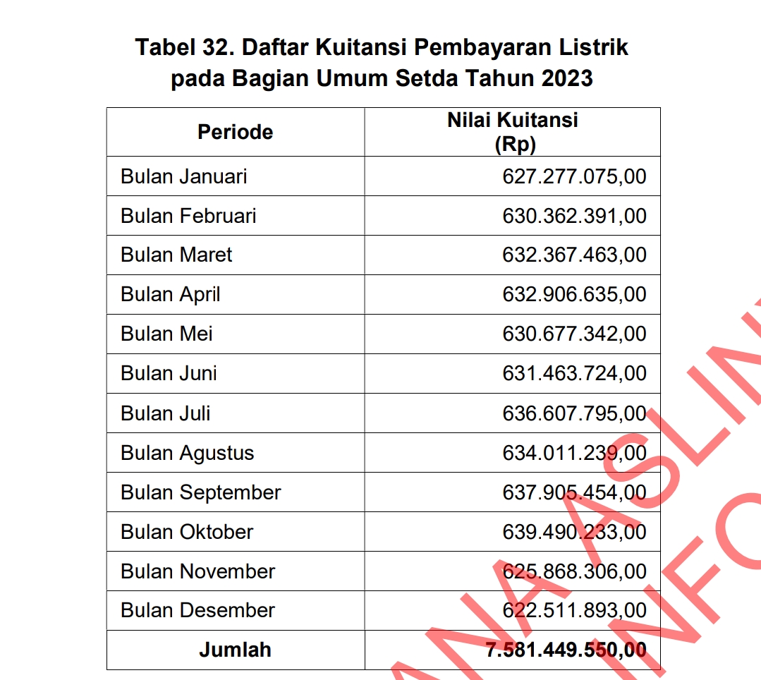 SKOR News, Polewali Mandar - Rp 7.549.828.311 anggaran pembayaran listrik pada Bagian Umum, Setda Kab. Polman, TA 2023 diduga dikorupsi.