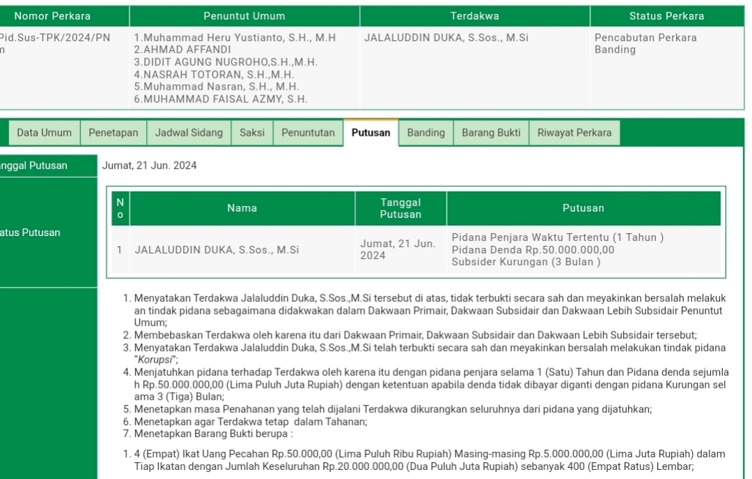 Terkait gaji serta fasilitas sebagai ASN yang masih diterima Jalaluddin pasca putusan pengadilan telah berkekuatan hukum tetap (incrah), apakah harus dikembalikan ke kas negara?, nantikan berita pendalaman skornews selanjutnya.