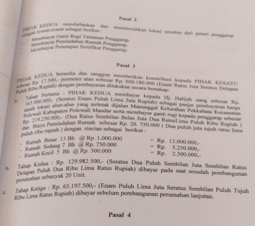 Kepala Bagian Hukum, Setda Kab. Polman yang dimintai tanggapannya mengatakan, selama isi perjanjian itu belum dilaksanakan seluruhnya oleh PT Karya Baru Tinumbu. Maka, Surat Perjanjian Bersama itu masih tetap berlaku dan mengikat para pihak.