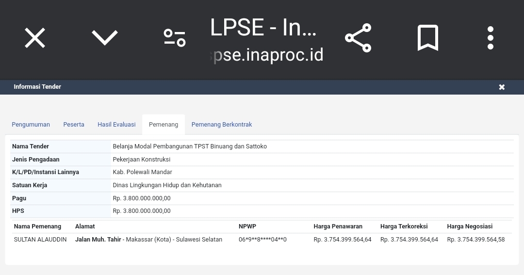 Sumber: LPSE Kab. Polman