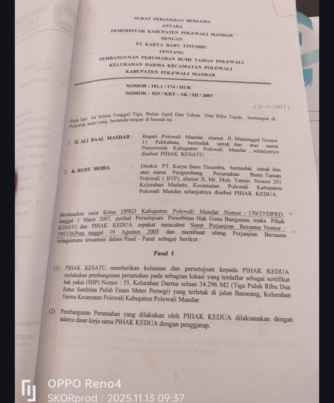 Penelusuran skornews terkait status tanah Hak Guna Bangunan diatas Hak Pakai. Bahwa, pemilik HAK PAKAI yang melepaskan HAK GUNA BANGUNAN kepada pihak lain, masih memiliki hak atas tanah. Hal tersebut, bertentangan dengan pernyataan Sekretaris Daerah, Nursaid yang mengutif penjelasan Kepala Kantor Pertanahan Polewali Mandar, bahwa Hak Guna Bangunan diatas Hak Pakai telah sepenuhnya menghilangkan hak pemilik Hak Pakai. *Awi