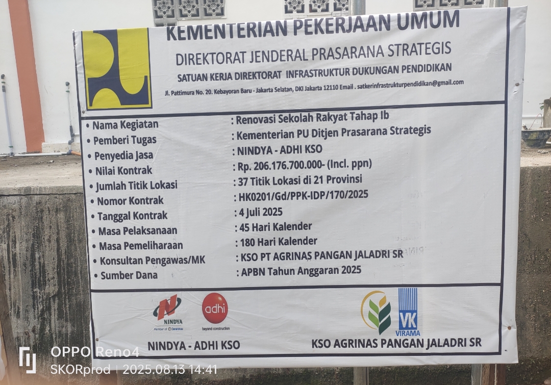 Pelaksana pembangunan, dikerjakan oleh rekanan PT Nindya Karya (BUMN), yang waktu penyelesaian pekerjaannya akan berakhir pada Tanggal, 17 Angustus 2025, (45 hari kerja).