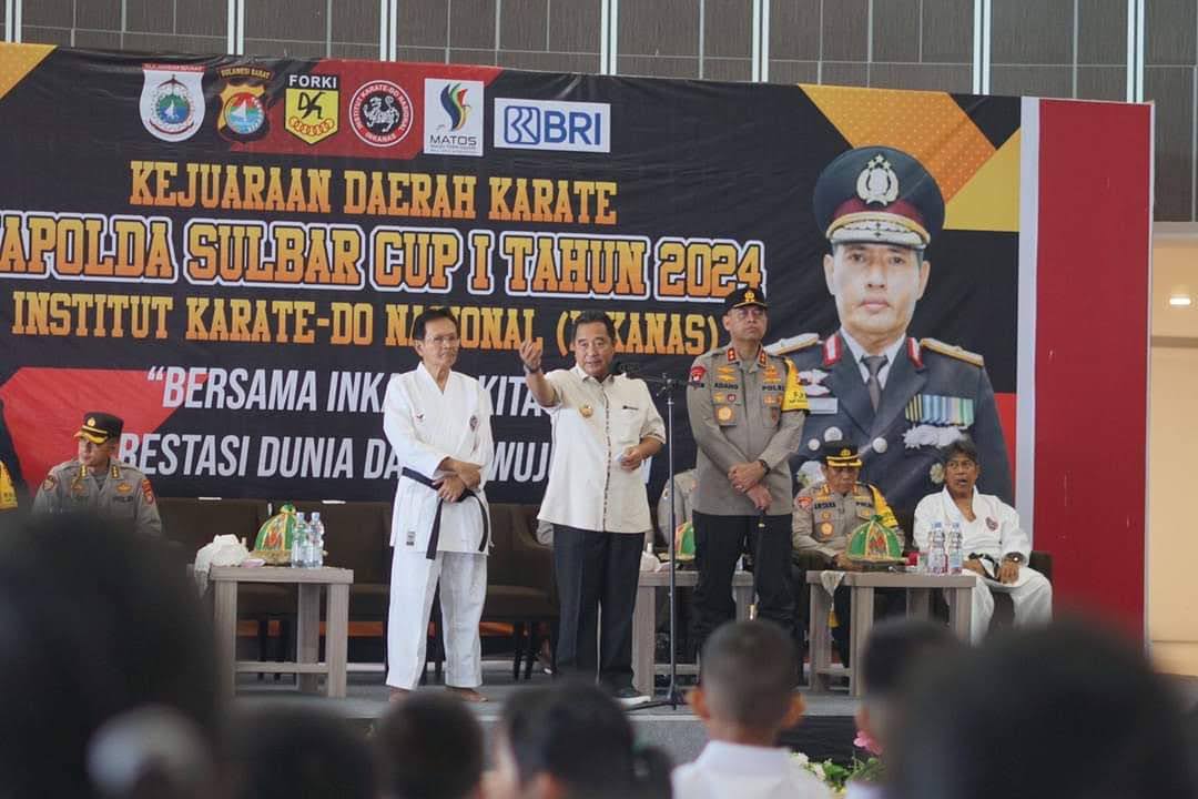 SKOR News, Sulbar - Pj. Gubernur Sulawesi Barat, Bahtiar Baharuddin menghadiri pembukaan Kejuaraan Daerah (Kejurda) Institut Karate-Do Nasional (INKANAS) Kapolda Sulawesi Barat Cup 1, Tahun 2024 di Matos, Kamis (24/10/24).