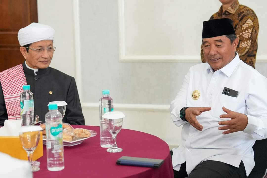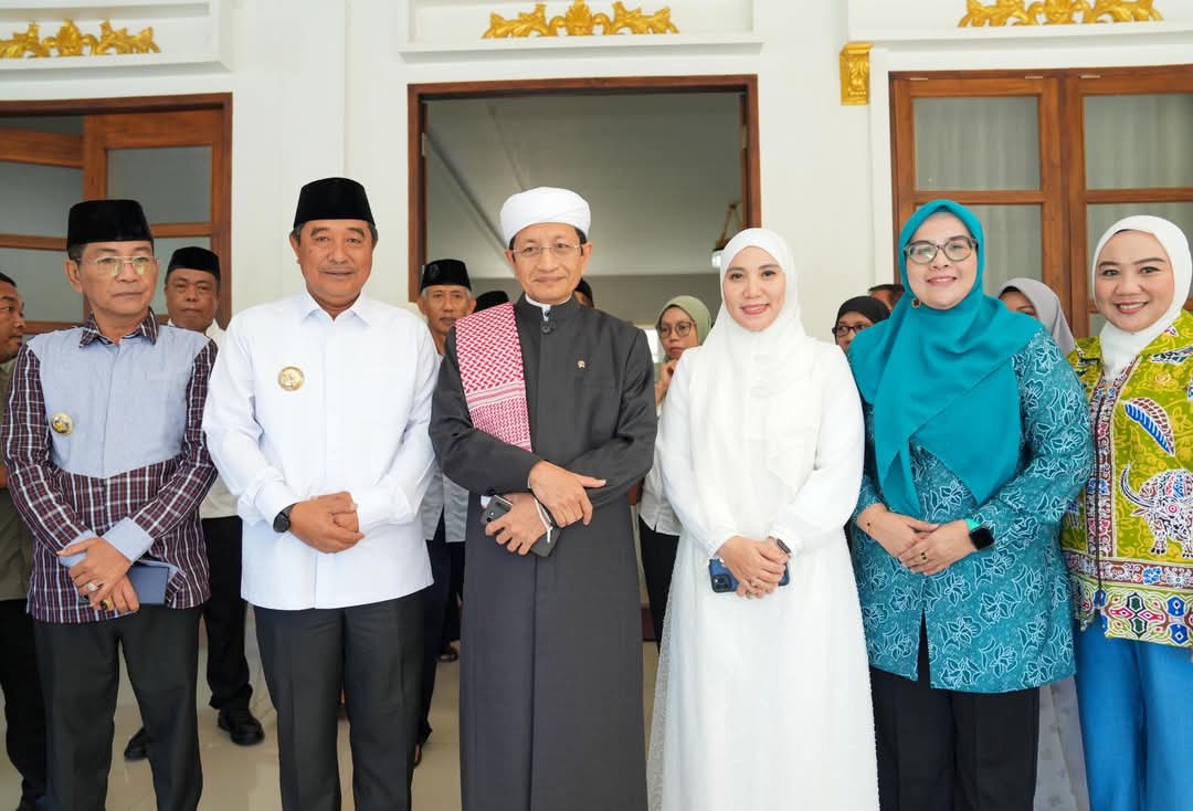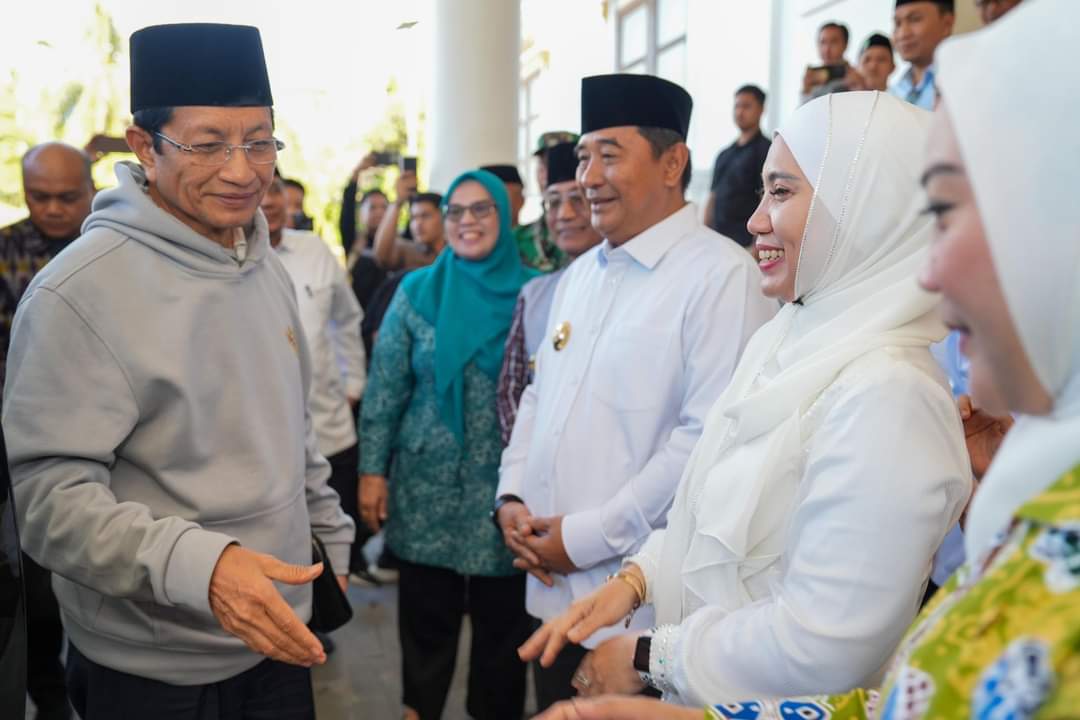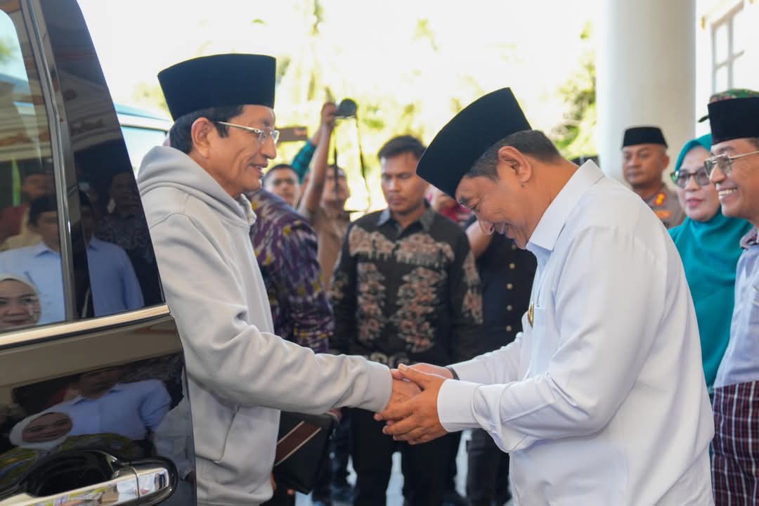 SKOR News, Sulbar - Pj Gubernur Sulbar, Bahtiar Baharuddin bersama Pj Bupati Polman, Ilham Borahima menyambut kedatangan Menteri Agama, Nasaruddin Umar di Rujab Bupati Polman, Sabtu, (30 Nopember 2024).
