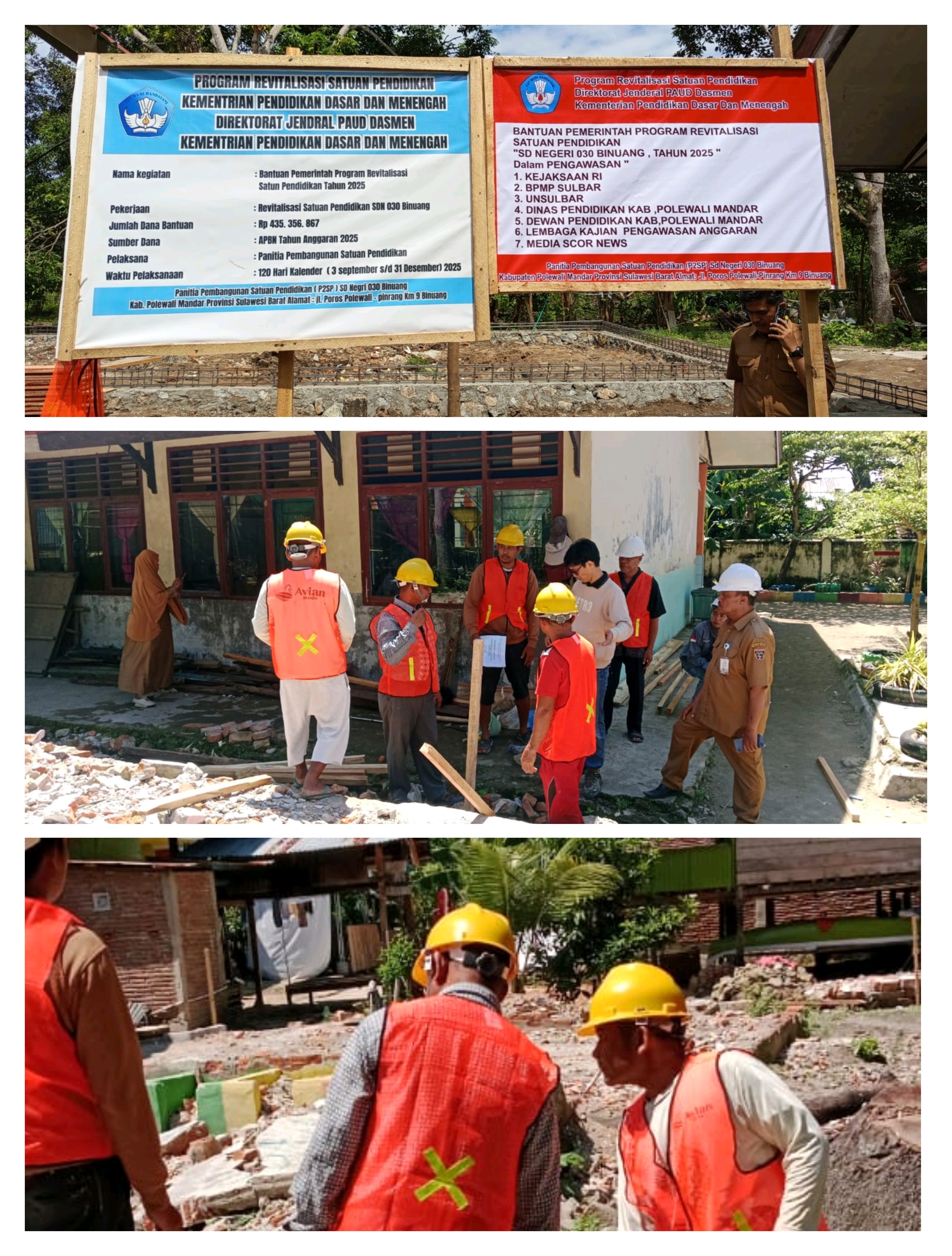 Kepala Sekolah bersama Ketua Komite dan seluruh jajaran serta masyarakat setempat yang terlibat dalam proses pembangunan, melakukan kerja-kerja kolaboratif, detail spesifikasi dalam RAB dipedomani dan diaplikasikan pada setiap tahapan pekerjaan.