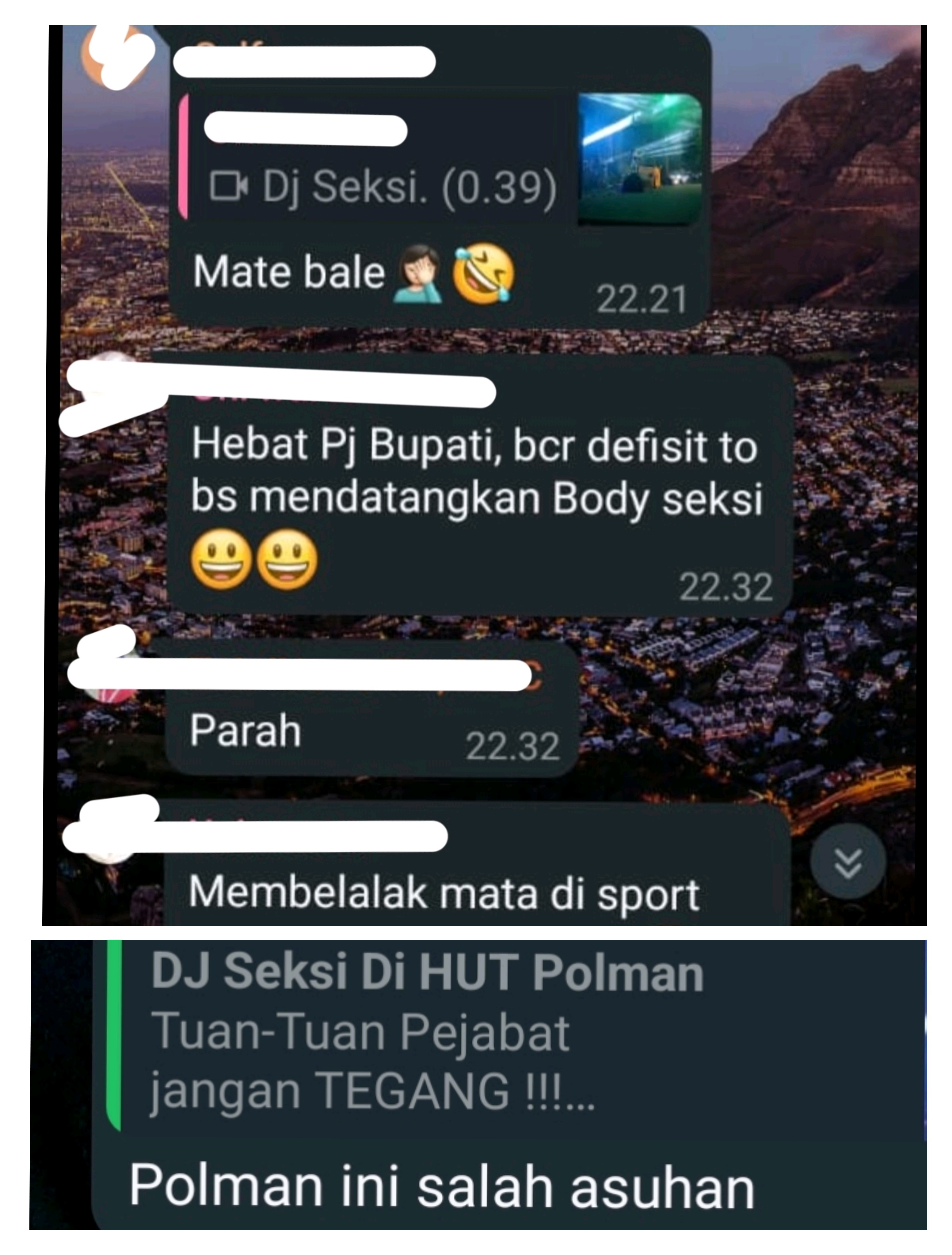 Penampilan DJ itu identik dengan dunia hiburan malam, erotisme yang mempertontokan lekuk tubuh dan goyangan menggairahkan. Disini, ditonton banyak anak-anak dan pasti banyak yang risih. Kalau Pejabat Polman, suka. Sebaiknya tampilkan di ruang kerjanya saja dan yang suka silahkan ikut nonton