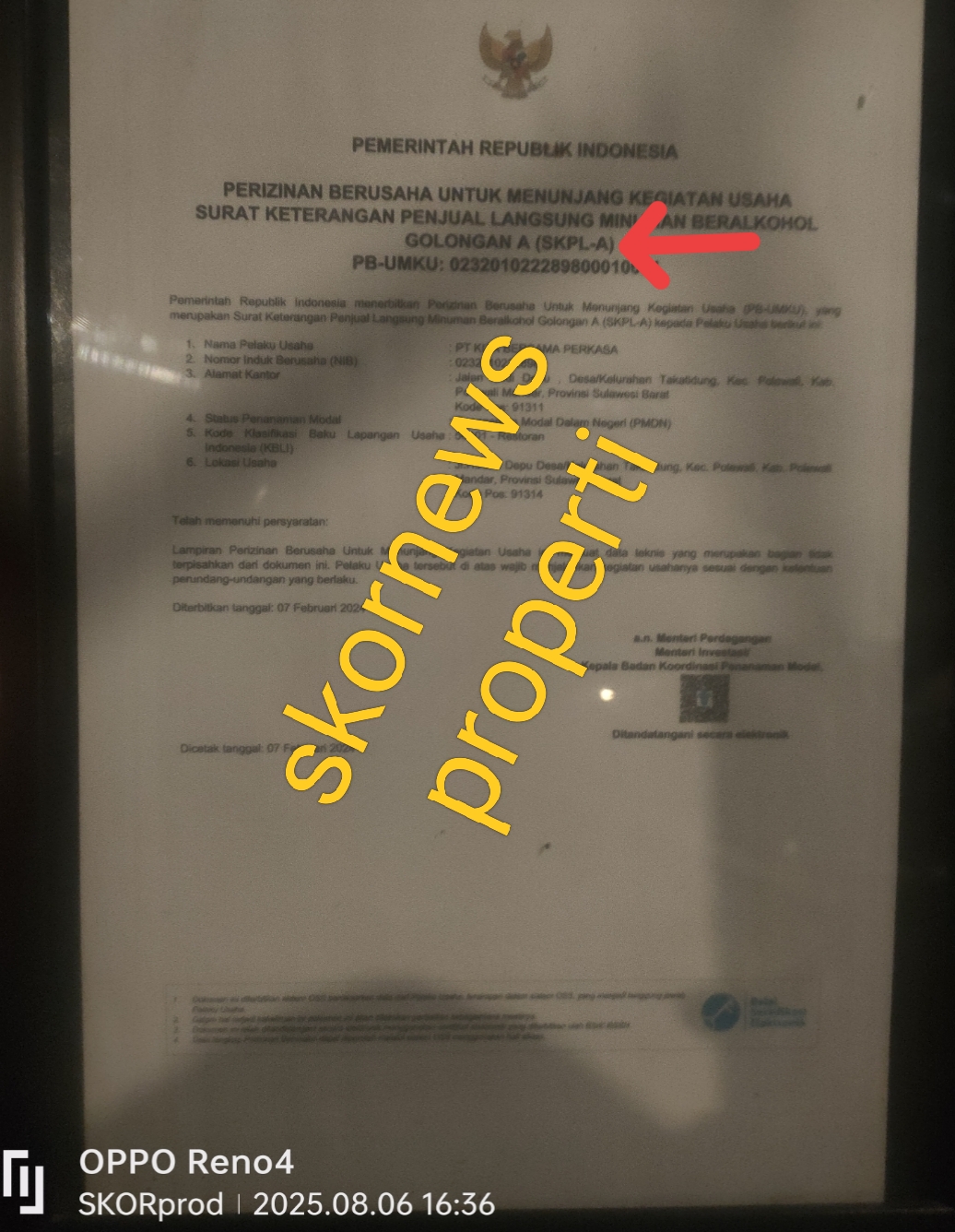 Pelaku Usaha BIG, hanya punya ijin usaha SKPL-A (minuman beralkohol Gol. A, berkadar rendah) usaha Restoran, Minuman Cafe dan Karaoke.