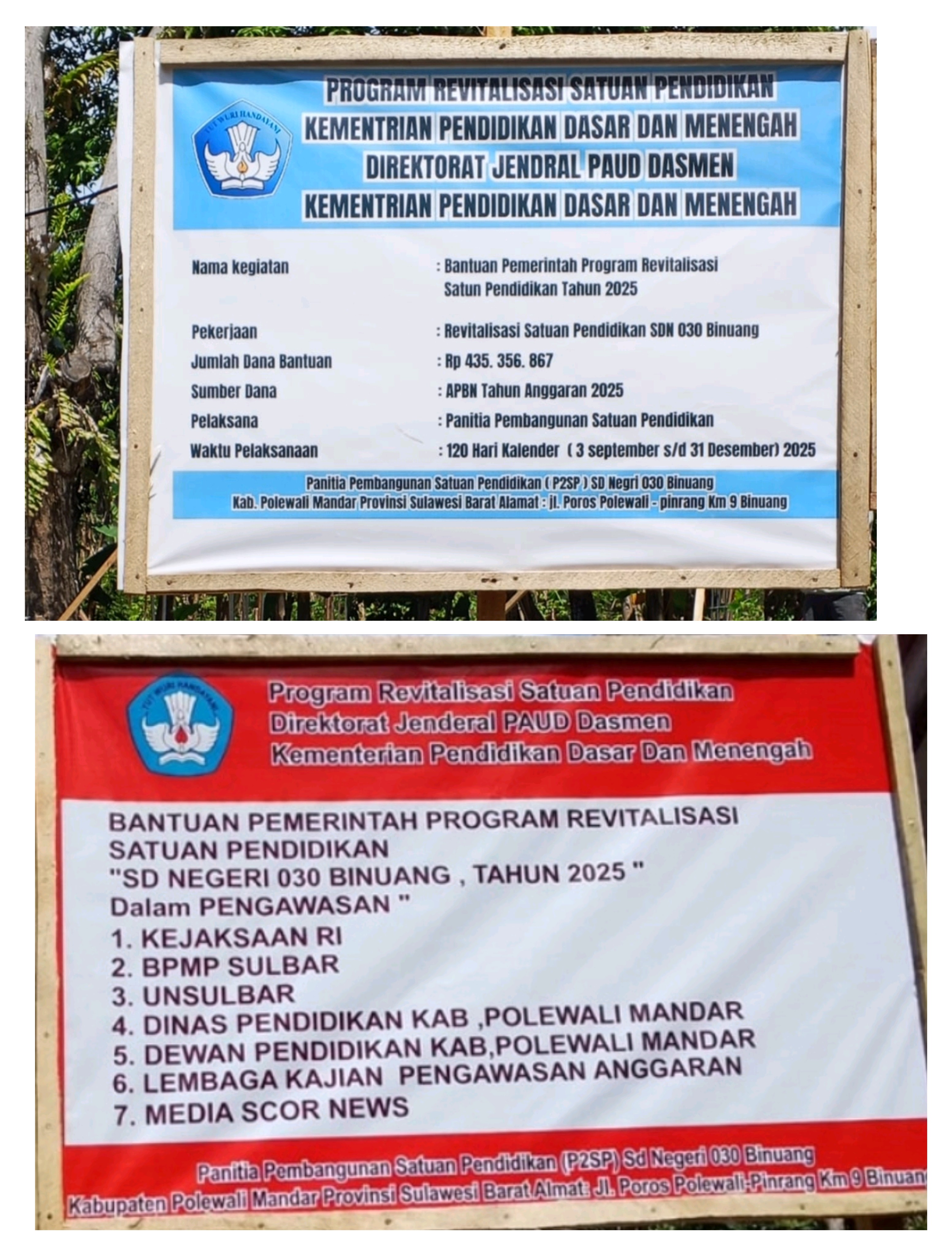 SKOR News, Polman - Media Infolaki dan LSM LAKI mencurigai adanya unsur KKN dibalik tercantumnya nama skornews di papan Proyek pembangunan DAK Revitalisasi sekolah SDN 030 Binuang.